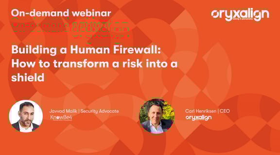 Learn more in our on-demand webinar about the human firewall and discover how to turn your weakest links into your most significant assets. Our expert speakers are Carl Henriksen, CEO of OryxAlign, and Javvad Malik, Security Advocate at Knowbe4.